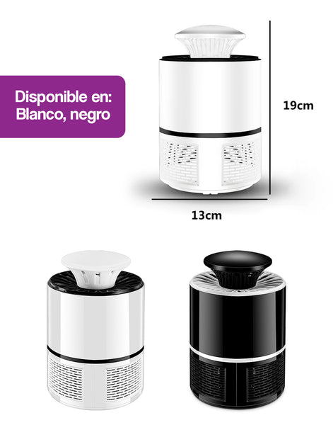 Cuenta con un potente ventilador de succión. El ventilador lo absorbe y las tablas adhesivas de pegamento lo atrapan, la luz UV atrae mosquitos, moscas de la fruta, polillas y otros insectos. Puede disfrutar de un ambiente libre de mosquitos con uso continuo durante 3 a 5 días.