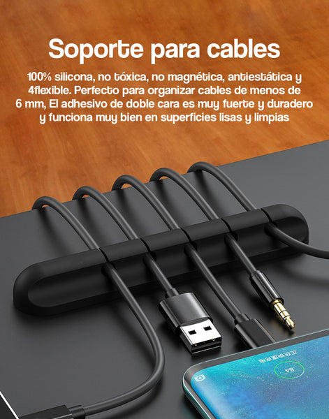 Estos soportes están hechos de material de silicona ecológico y flexible de alta calidad que se dobla fácilmente e inserta los cables sin problemas.