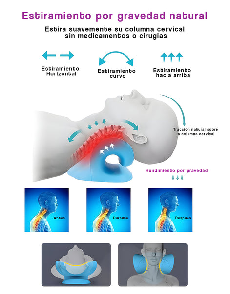 Dispositivo de Tracción Cervical, Cómodo en Forma de C, Almohada Quiropráctica Correctora de Postura del Cuello. El relajador de cuello y hombros es un dispositivo que utiliza la tracción para aliviar el dolor y la rigidez del cuello. Se coloca en la parte posterior del cuello y se usa durante 10 15 minutos cada vez.